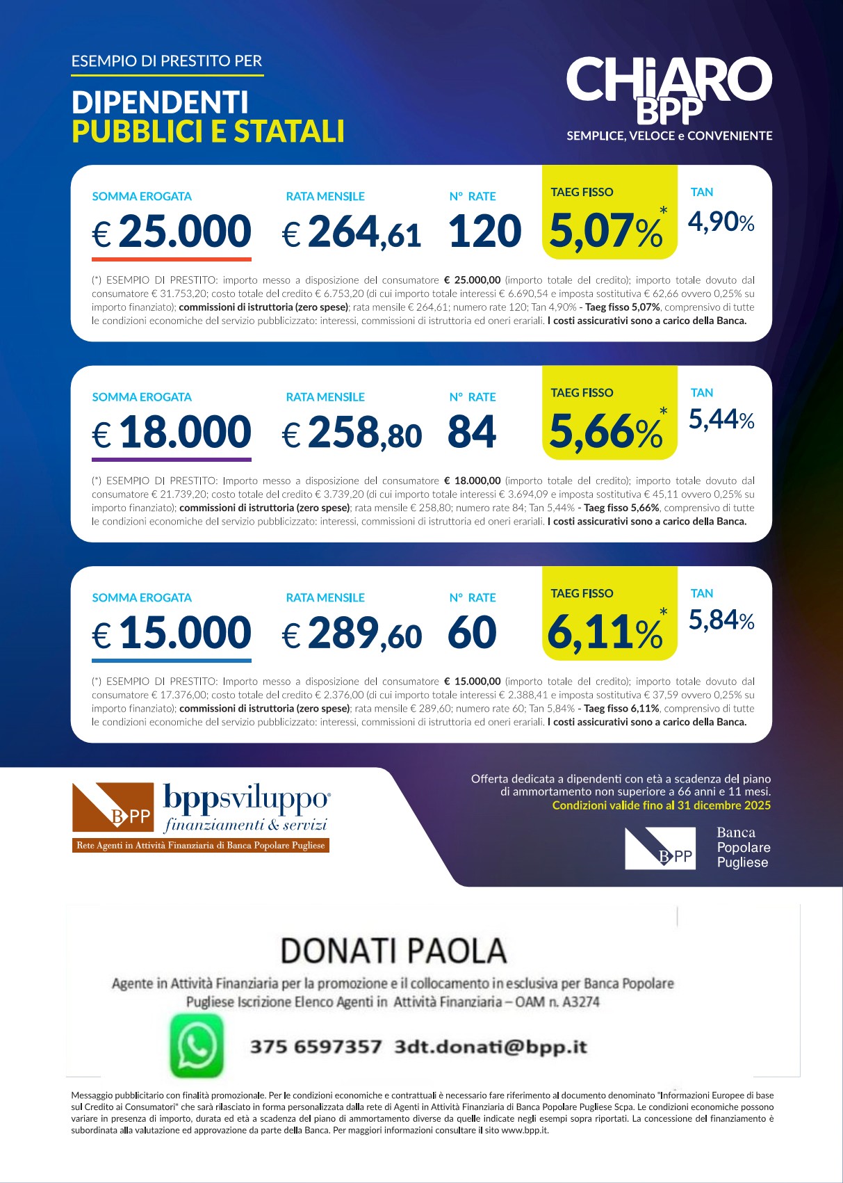 Bpp Offerta dipendenti Pubblici e Statali 3 esempi Validità 31.12.2025 |